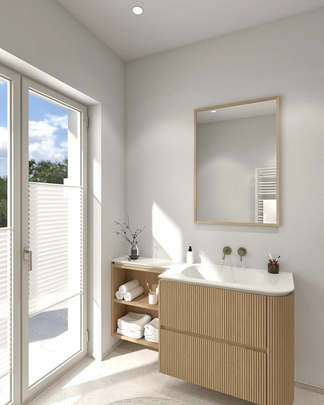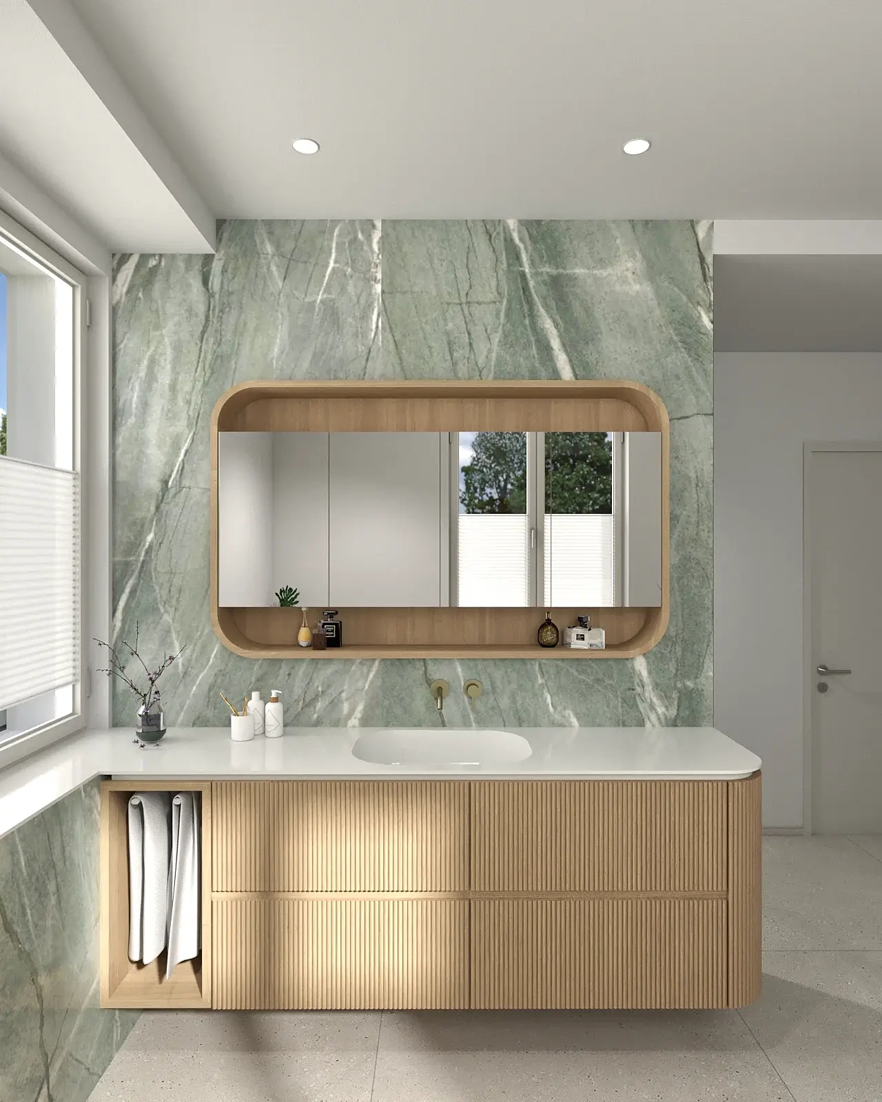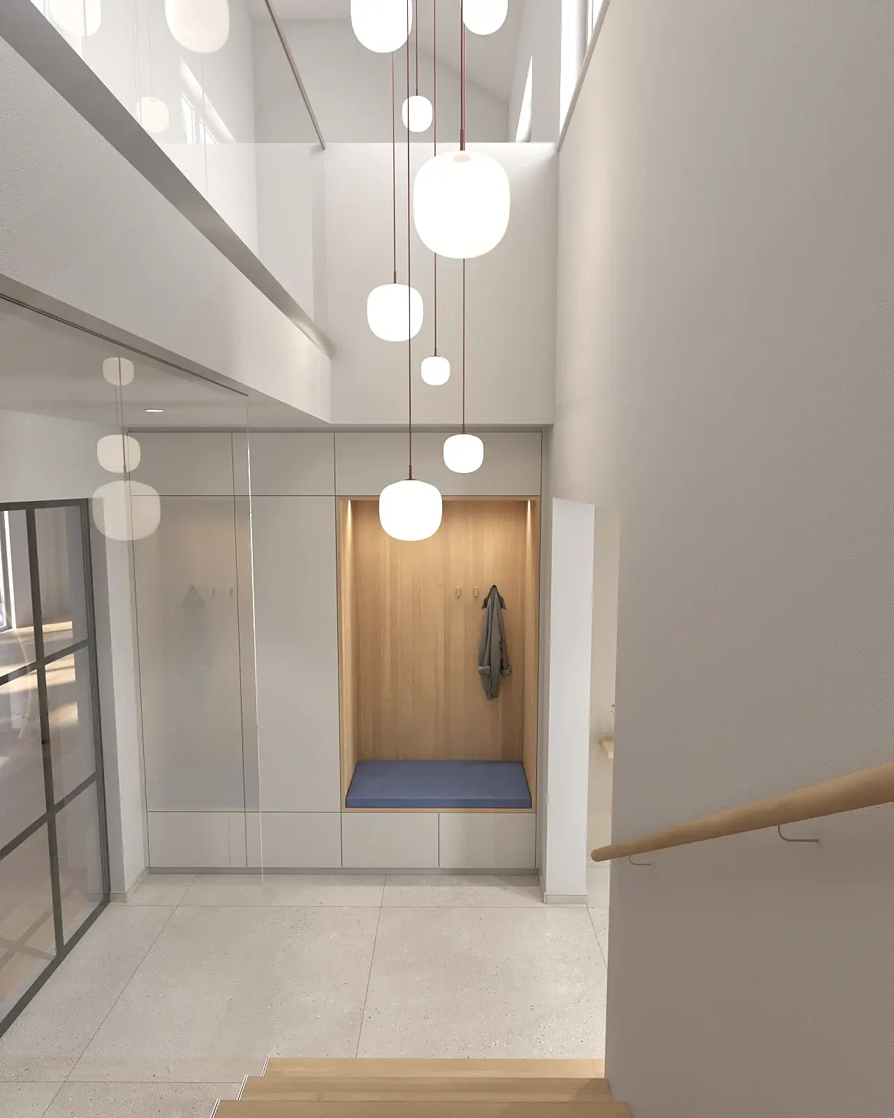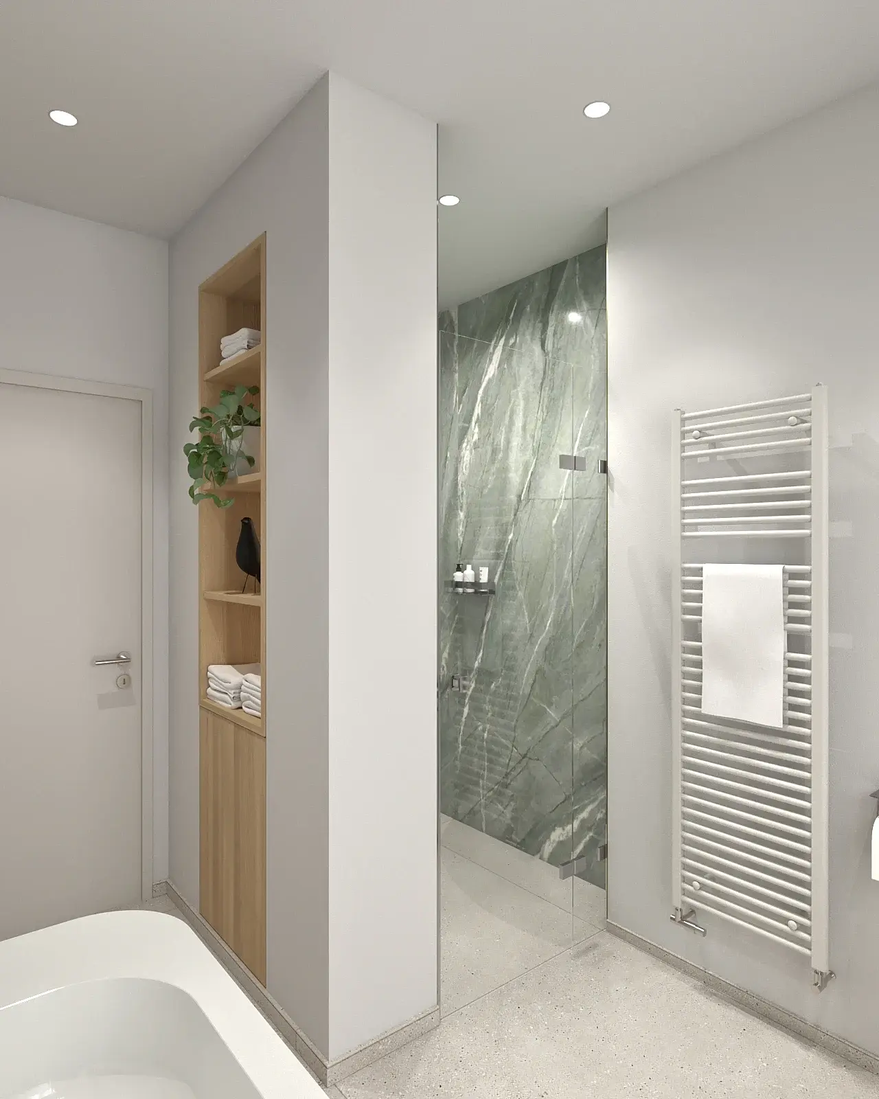 Bäder, Küchen, Garderoben, Einbaumöbel – sämtliche Bereiche des Neubaus wurden vollständig modelliert und visualisiert. Mehrere Korrekturläufe gehörten zum Prozess: Materialien wurden angepasst, Proportionen überprüft, Details präzisiert. Genau dafür ist die Visualisierung in solchen Projekten unverzichtbar – nicht als Dekoration, sondern als Abstimmungswerkzeug zwischen Handwerk und Planung.